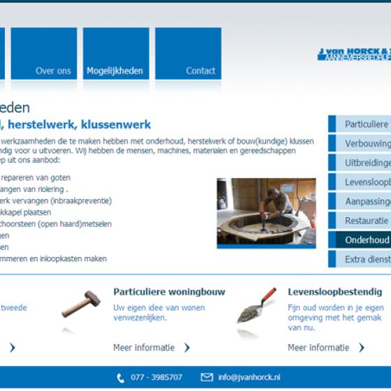 In opdracht van Aannemersbedrijf J. van Horck en Zn. heeft Encore een website gerealiseerd voor dit allround bouwbedrijf dat al sinds 1945 particuliere woningen en boerderijen bouwt.