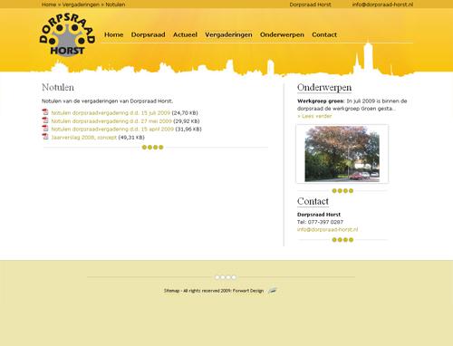 De grafische vormgeving van de website is modern en sluit aan bij de huisstijl van de dorpsraad. De herkenbare ‘skyline’ van Horst komt terug in het ontwerp van de website. Om de website te onderhouden is deze voorzien van een Content Management Systeem (CMS). Hiermee kunnen de leden van de dorpsraad elk onderdeel van de website zelf bijhouden.