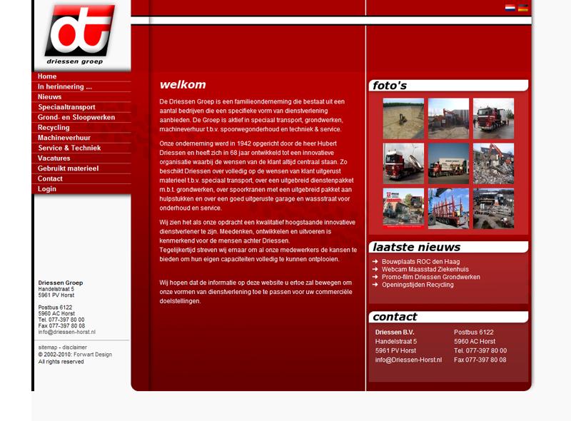 Driessen Groep koos voor het Content Management Systeem van Encore Design. Hiermee kunnen medewerkers van het bedrijf zelf de volledige website beheren. Daarnaast verzorgen wij de hosting van de website. Tevens registreerden wij een aantal interessante domeinnamen die nog beschikbaar waren voor de Driessen Groep.
