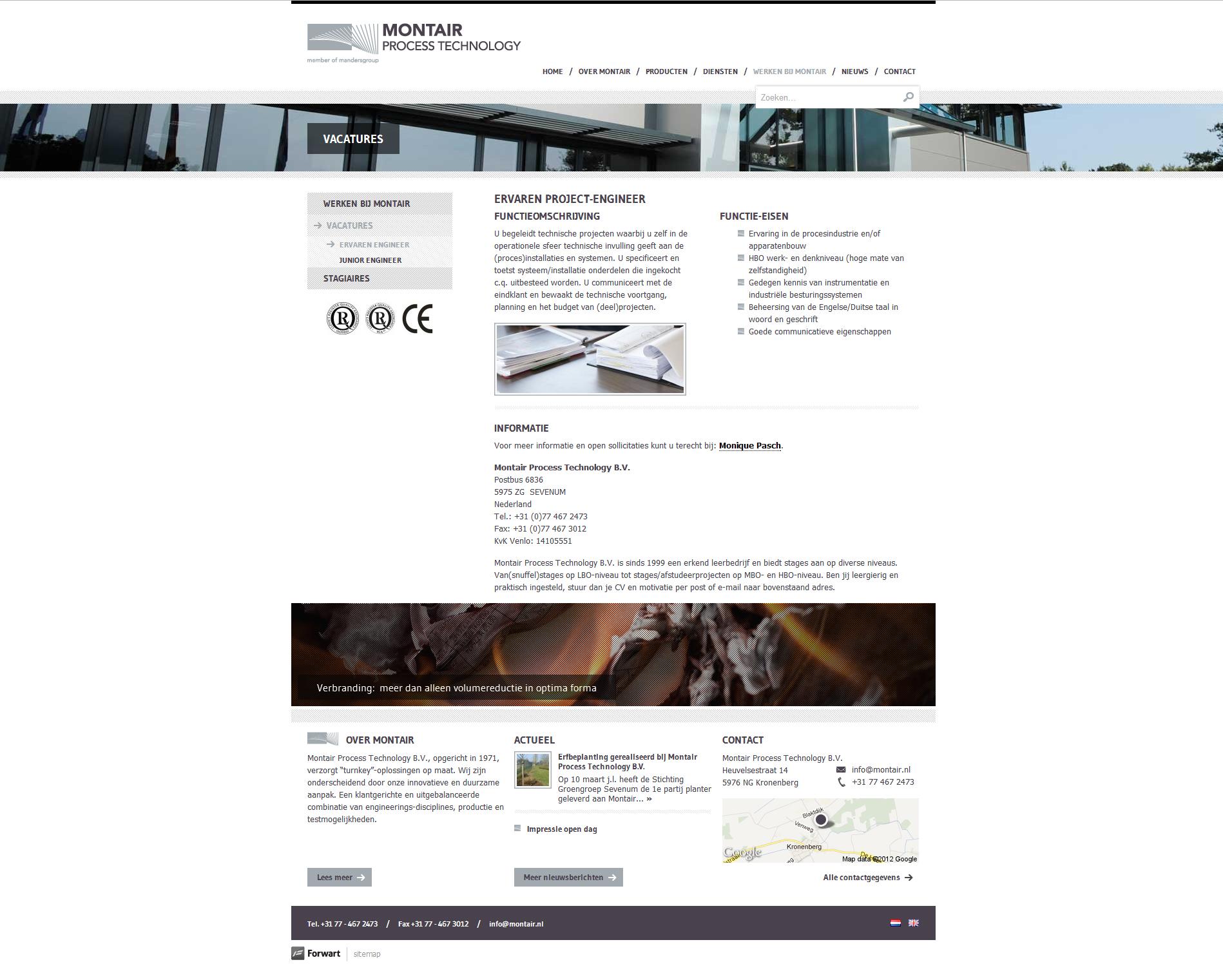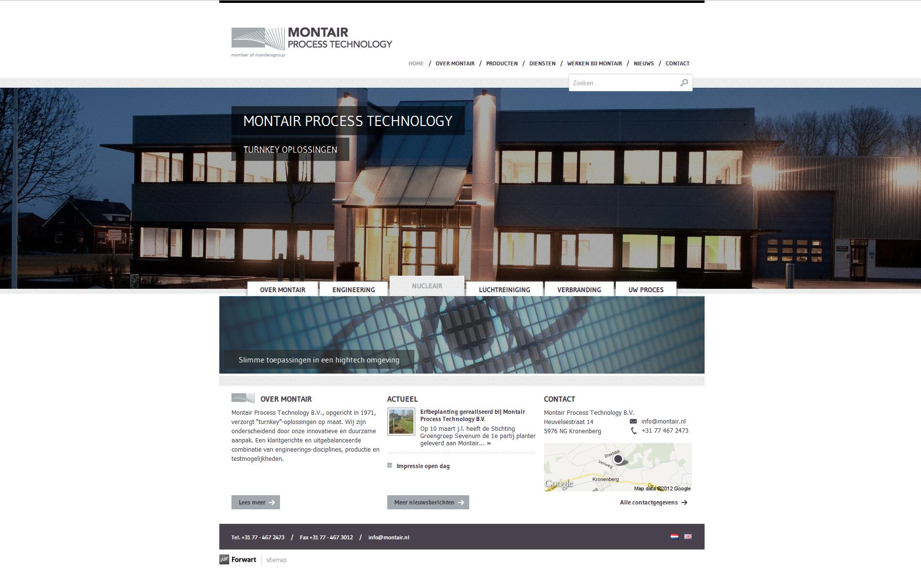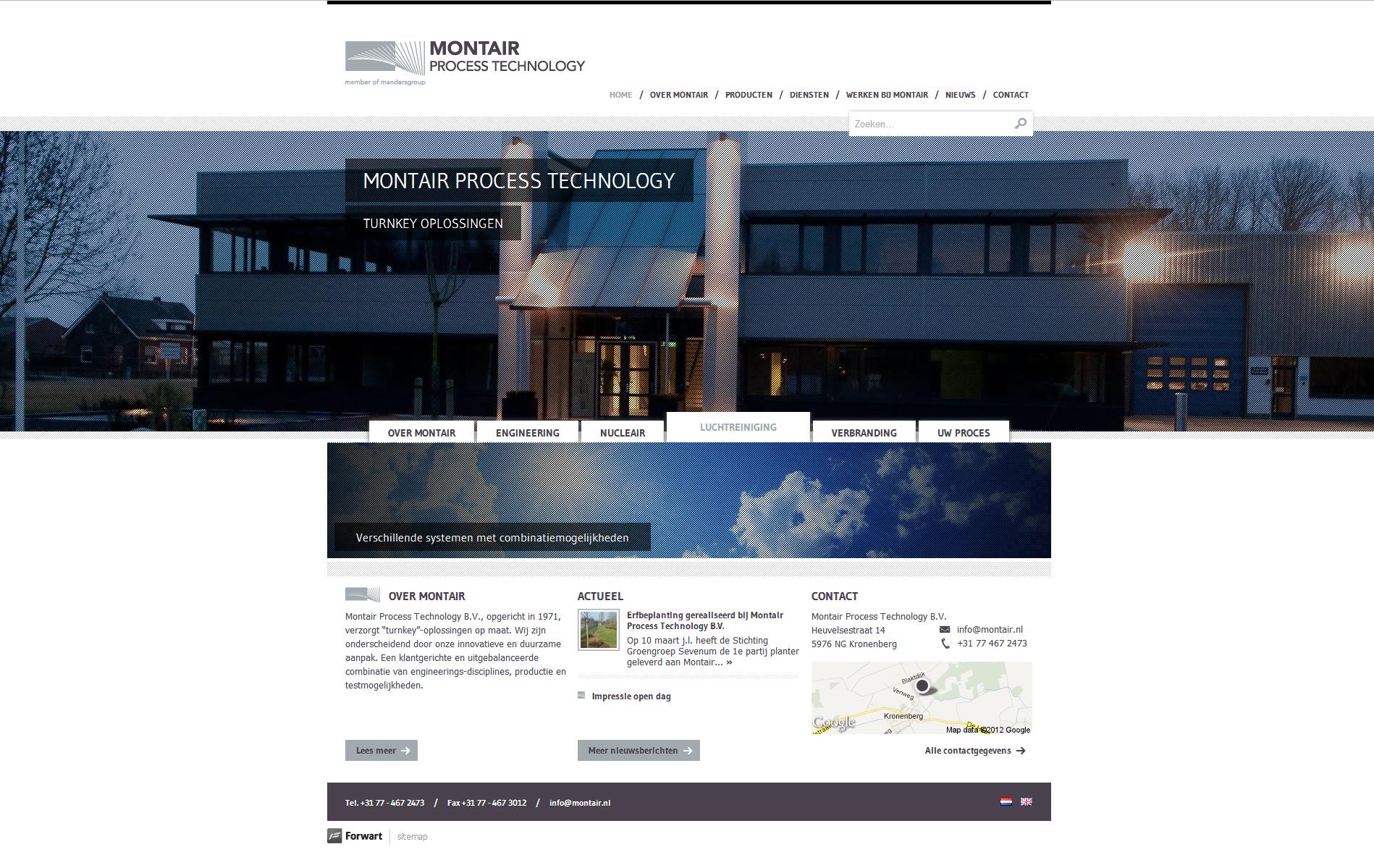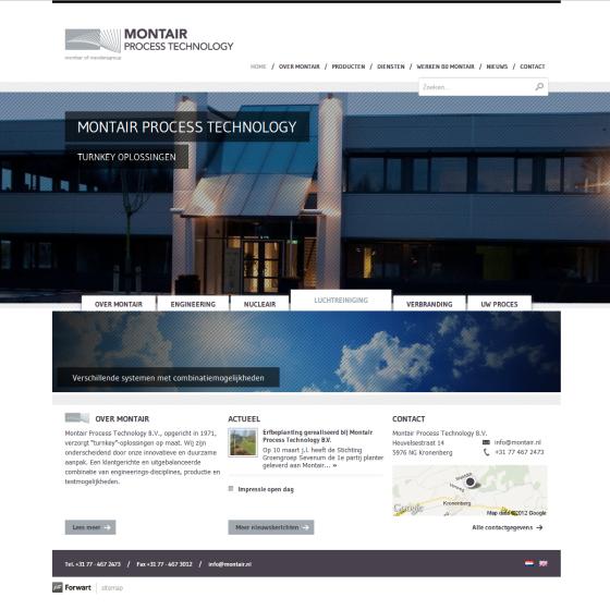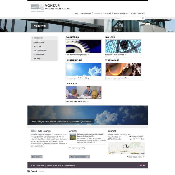 De expertise en kwaliteit van het bedrijf uit Kronenberg komen terug in het ontwerp van de nieuwe website. Op de homepage wordt het bedrijf aantrekkelijk gepresenteerd en kan de bezoeker direct een keuze maken uit de belangrijkste diensten en producten van Montair.