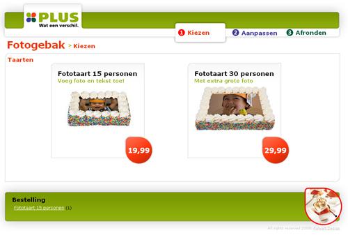 In stap 1 wordt een product gekozen welke in stap 2 gepersonaliseerd kan worden door het toevoegen van een foto, tekst en kader. Ten slotte wordt de bestelling afgerond door het invullen van de persoonlijke gegevens waarna automatisch de dichtstbijzijnde winkel van Plus supermarkt geselecteerd wordt. Door het bestelproces in slechts drie stappen uit te voeren kan een bezoeker snel en duidelijk bestellingen plaatsen.