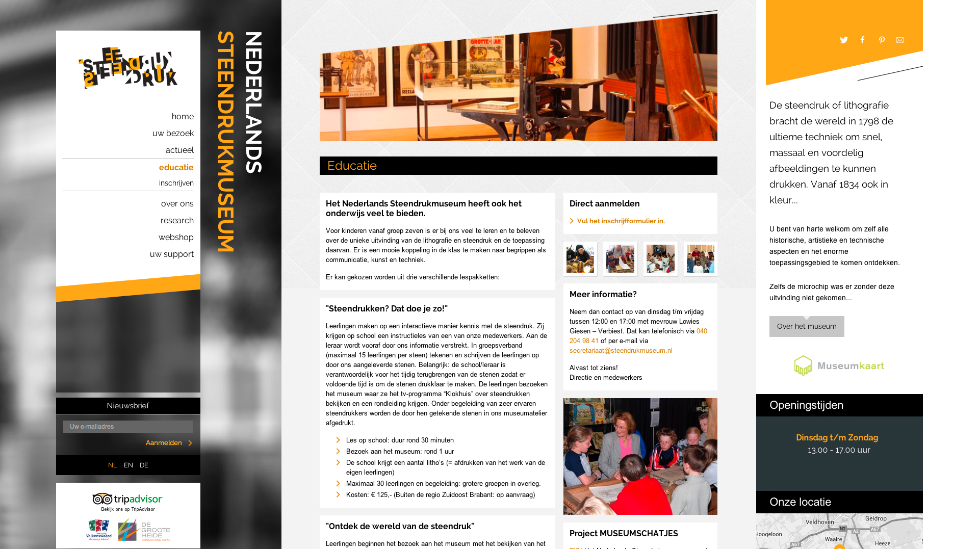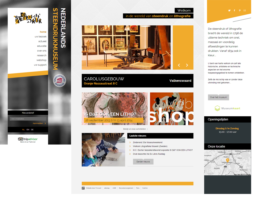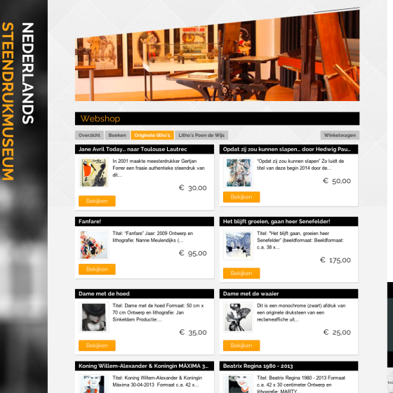 De steendruktechniek en expertise van het museum komen uitgebreid tot uiting binnen de nieuwe website. Op de homepage wordt het museum aantrekkelijk gepresenteerd en kan de bezoeker direct een keuze maken uit de belangrijkste informatie van de website, bijvoorbeeld bezoekersinformatie of de collectie. Bovendien is de website voorzien van een webshop waar bezoekers onder andere eenvoudig boeken en originele lithografieƫn kunnen bestellen en online betalen.