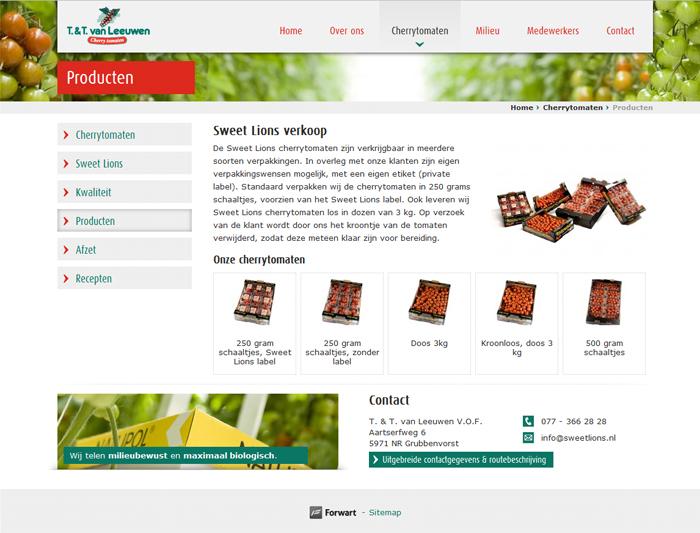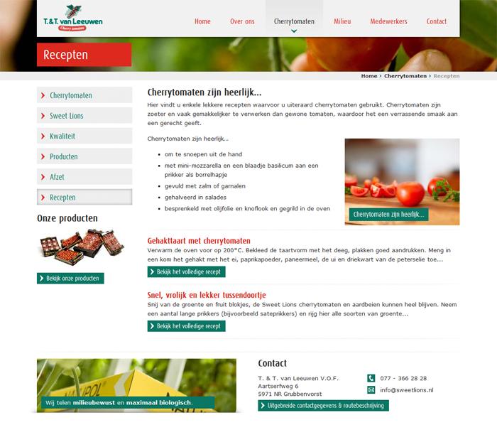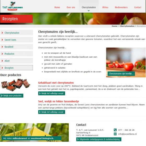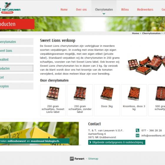 Encore heeft voor T.&T. van Leeuwen een nieuwe website gerealiseerd. T.&T. van Leeuwen is al sinds eind jaren ’80 gespecialiseerd in het kweken van cherrytomaten. Het bedrijf dat is gevestigd op het glastuinbouwgebied Californië, in het Noord Limburgse Grubbenvorst, vermarkt de cherrytomaten onder de naam “Sweet Lions”.