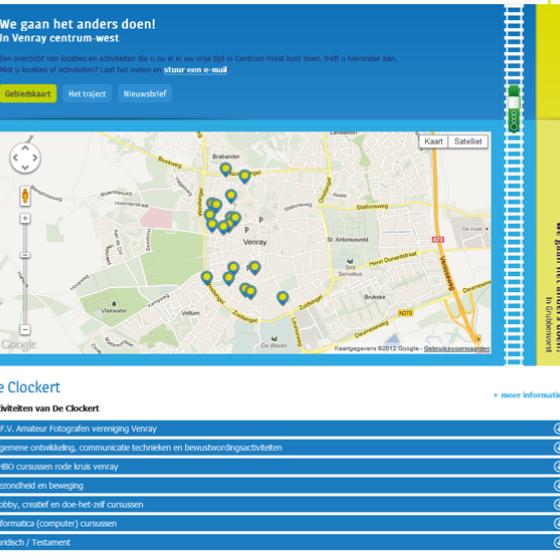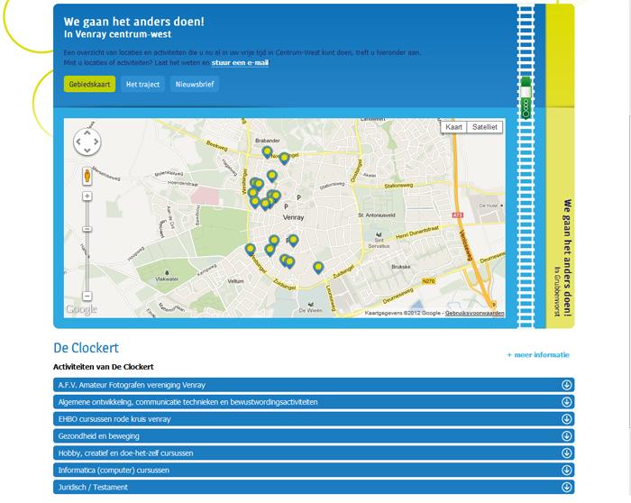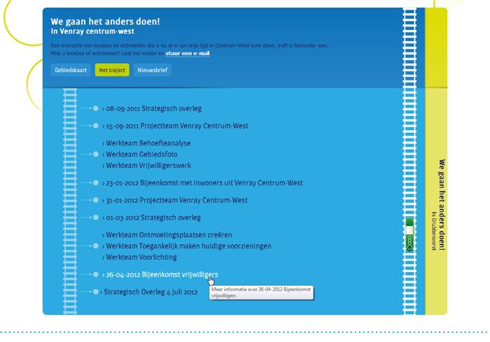 De website bevat voor beide trajecten een kaart waarop alle activiteiten te zien zijn. Bovendien geeft een tijdlijn inzicht in het traject. Via het forum kunnen website bezoekers reageren en discussiëren. Daarnaast bevat de website actuele berichten en een nieuwsbrief waarmee deelnemers automatisch op de hoogte blijven van nieuwe activiteiten.