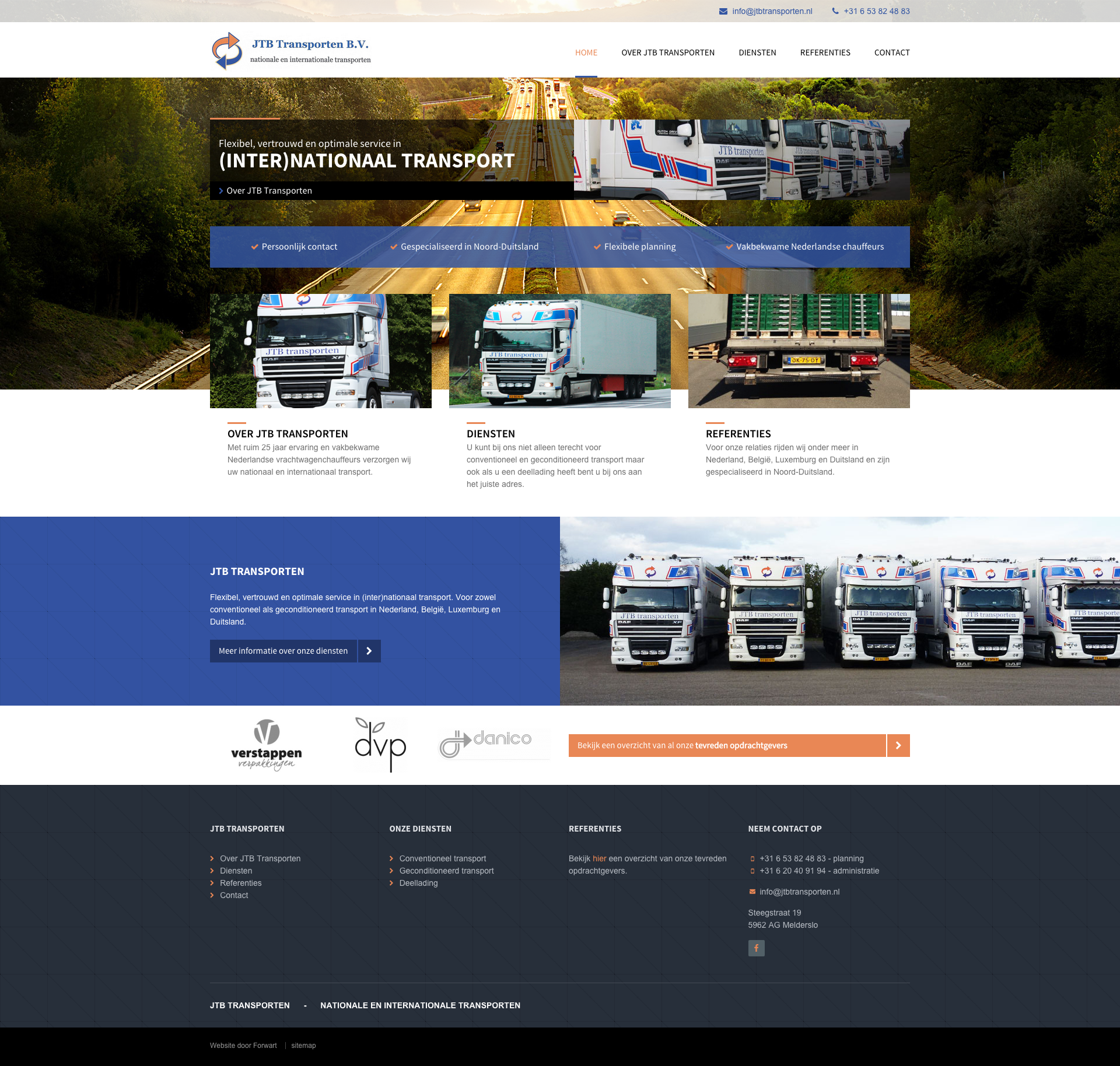 Internetbureau Encore heeft voor JTB Transporten een nieuwe website gerealiseerd. Met ruim 25 jaar ervaring in huis verzorgt JTB Transporten het transport van diverse producten; van bloemen, planten, groente en fruit tot voedingsmiddelen en non food. Het bedrijf uit Melderslo is gespecialiseerd in transport in de Benelux en naar Duitsland, maar is ook actief in landen als Oostenrijk en Zwitserland.