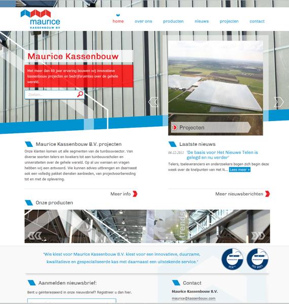 Encore heeft voor Maurice Kassenbouw B.V. een nieuwe website gerealiseerd. Het kassenbouw bedrijf heeft al meer dan 60 jaar ervaring met de realisatie van innovatieve kassenbouw projecten en bedrijfsruimtes over de gehele wereld. De klanten van het bedrijf komen uit alle segmenten van de tuinbouwsector. Van telers en kwekers tot aan tuinbouwscholen en universiteiten over de gehele wereld. Maurice Kassenbouw kan advies uitbrengen en daarnaast ook een volledig pakket diensten aanbieden; van projectvoorbereiding tot en met de oplevering.