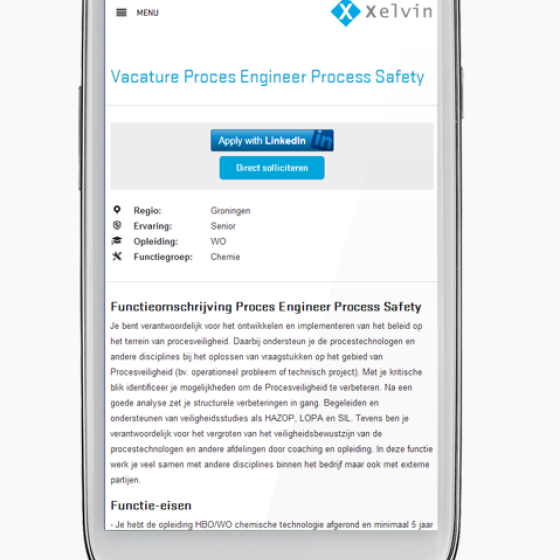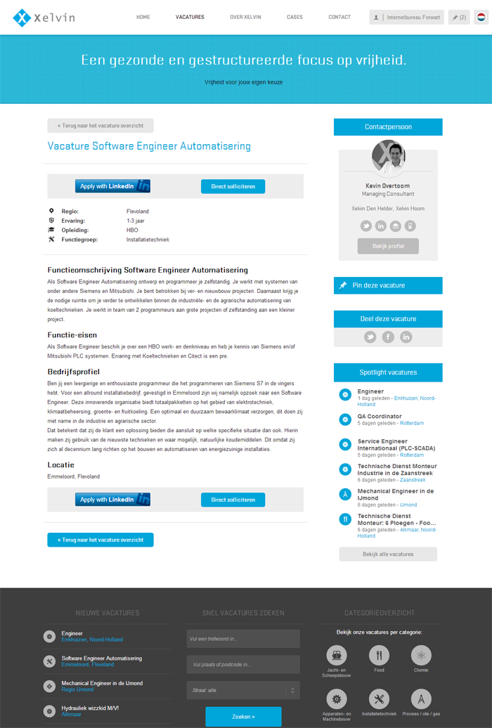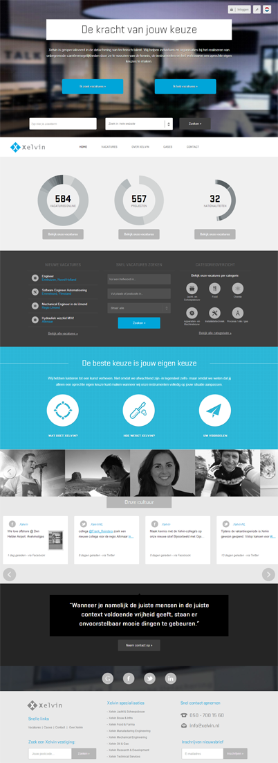 Het grafisch ontwerp is gerealiseerd door het merkenbureau van Xelvin en door Encore geoptimaliseerd en responsive uitgevoerd. De website bevat koppelingen met het vacature- en sollicitatiesysteem van Xelvin waardoor nieuwe vacatures automatisch op de website verschijnen en sollicitaties direct doorgezet worden. Kandidaten kunnen bovendien solliciteren via LinkedIn waarmee hun gegevens met één druk op de knop gedeeld worden met Xelvin.