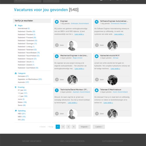 - Door de krachtige (vacature)zoekmachine kunnen kandidaten gemakkelijk hun droombaan vinden op de nieuwe website. Kandidaten kunnen filteren op diverse kenmerken zoals opleidingsniveau en werkervaring.