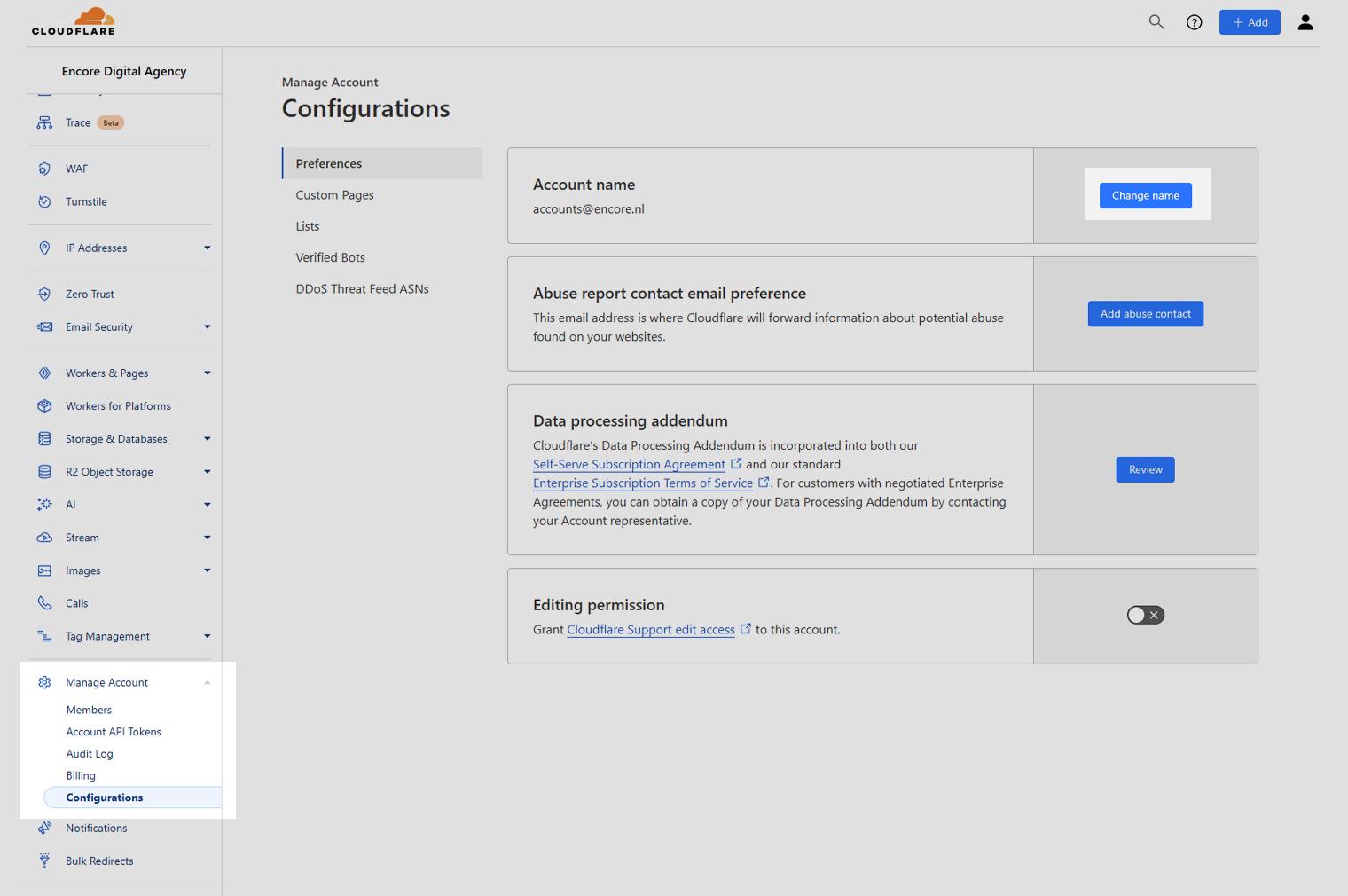 Wij regelen alles rondom de DNS-instellingen in samenwerking met de partij die de domeinnaam beheert. Dit betekent dat we ervoor zorgen dat alle records correct ingesteld worden om je website en e-mail goed te laten functioneren. Optioneel kan een IT-partij ervoor kiezen om zelf een Cloudflare-account aan te maken en ons vervolgens beheerrechten te geven.