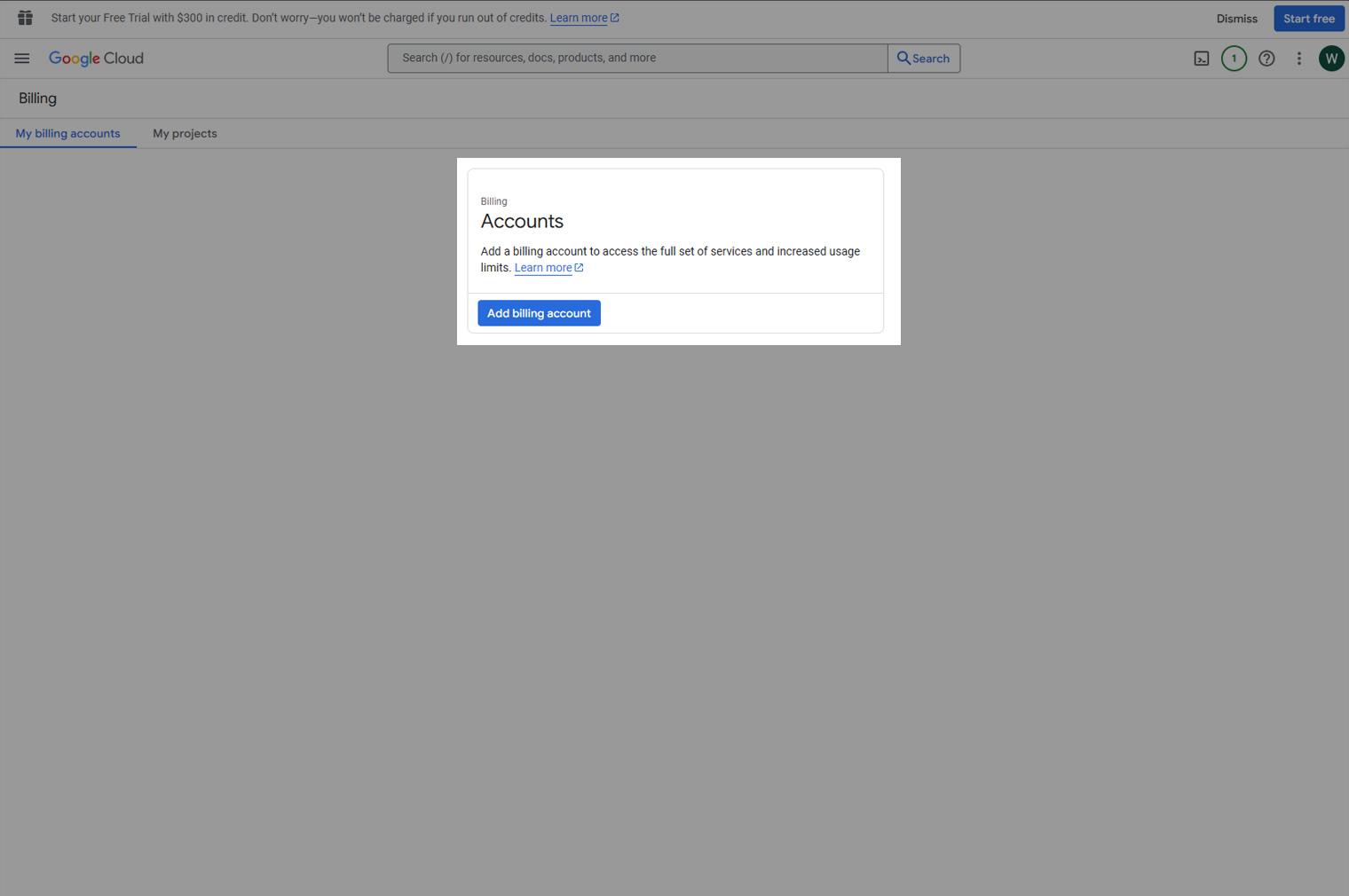 - Ga naar Google Cloud Billing (en zorg dat je ingelogd bent met hetzelfde account als in stap 1).